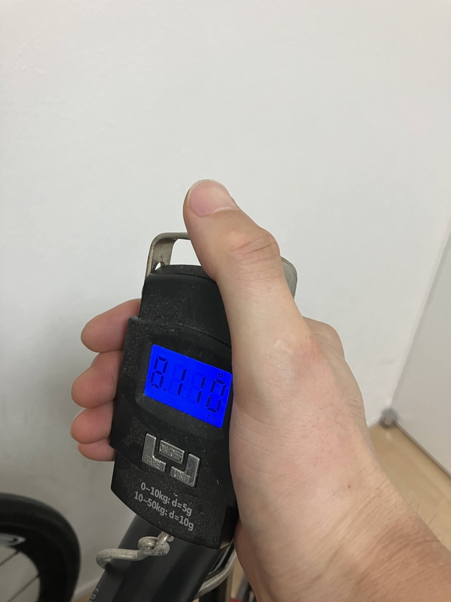 交換したハンドルとサドルで200gくらい軽くなってるはずだが、フレームやアウターワイヤーの重量差で吸収されているのか。