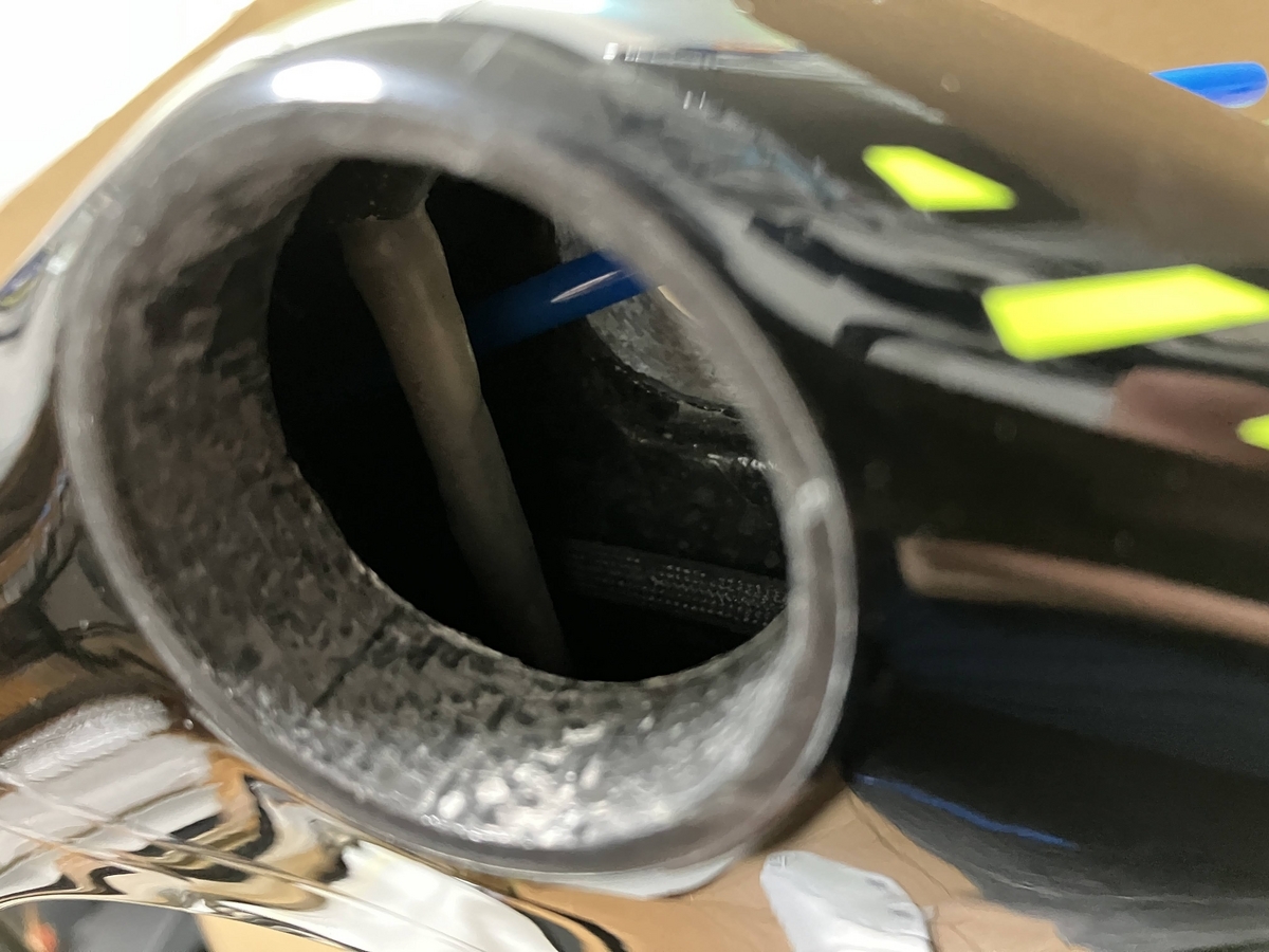フレーム購入時は青いライナーがついているが電動変速ケーブル用なので取り外し、付属のキャップで穴をふさぐ。